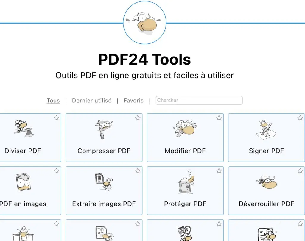 PDF24 est une plateforme en ligne qui permet d’éditer et de convertir des fichiers PDF. Elle procure une multitude de fonctionnalités pour traiter vos documents PDF, comme la conversion en Word, Excel, PowerPoint, etc.