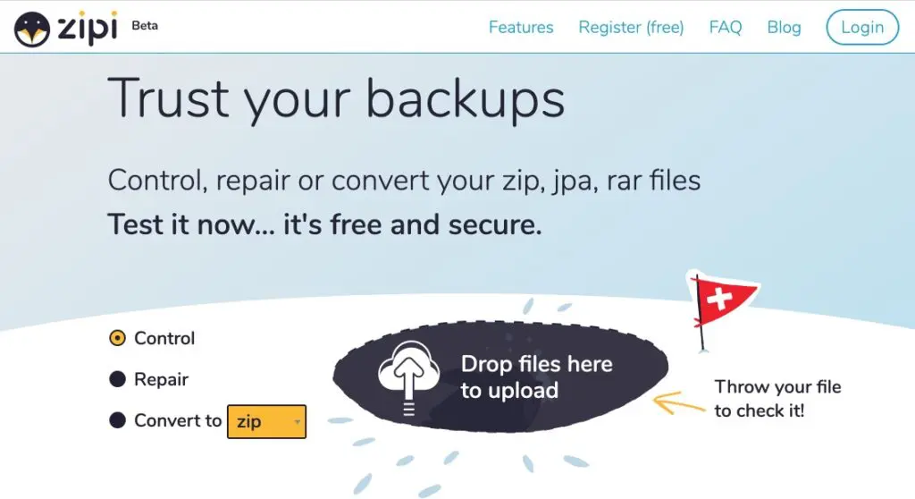 Además de su función de convertidor, Zipi Tools tiene otras ambiciones. Con la misma sencillez que para la conversión, la herramienta en línea permite comprobar todo el archivo de archivo y, en caso de problemas, intentar repararlo. Qué ahorrarle la apuesta si maneja archivos de copia de seguridad.